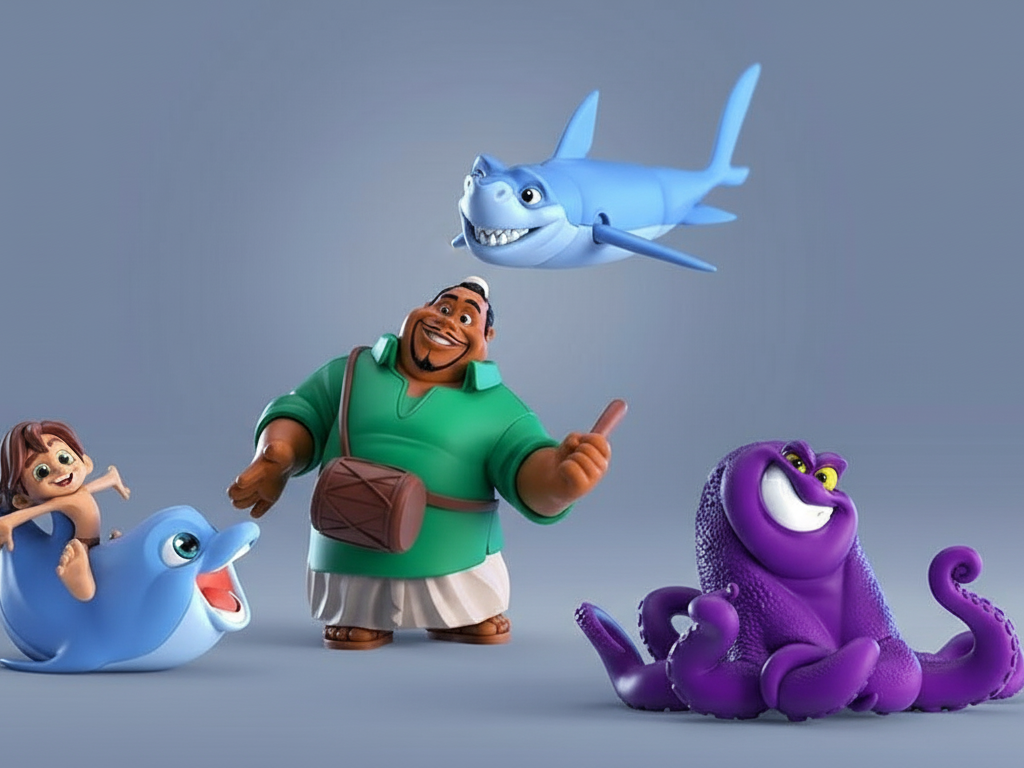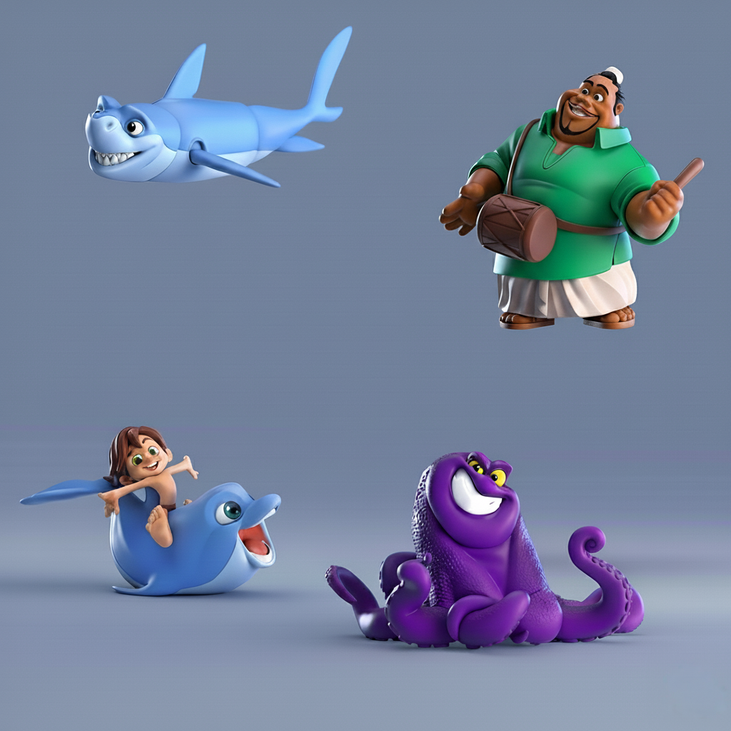 مجموعه 4 تایی اکشن فیگورهای پسر دلفینی شامل 4 اکشن فیگور: